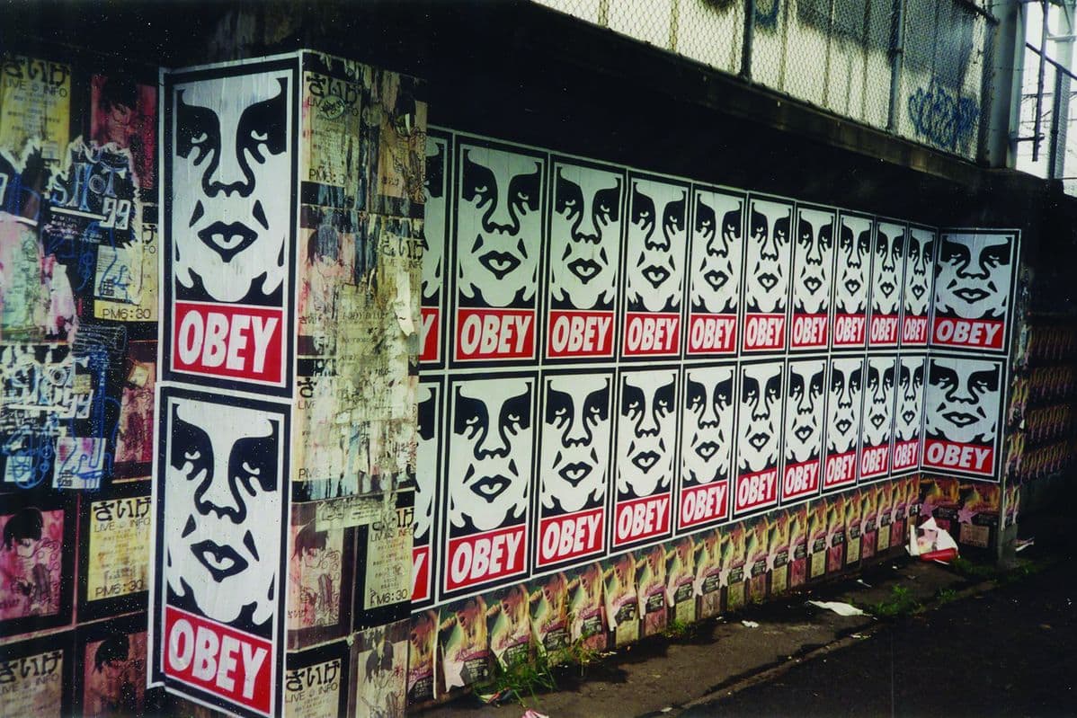 On the one hand, this whole thing started as a street art sticker campaign, featuring the word OBEY along with a black and white image of Andre the Giant’s face. Fairey calls it an experiment in phenomenology and says on his website, “The obey sticker attempts to stimulate curiosity and bring people to question both the sticker and their relationship with their surroundings.” So in that regard, I find this incarnation of the whole Obey Giant thing to be very fitting and totally in line with the overall themes of the film. On the other hand, expanding it to a popular clothing brand feels kind of wrong.