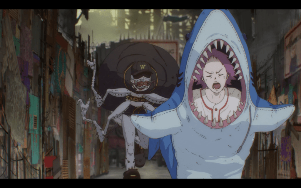 Let me set the scene for you. The city is grungy and dark, sitting beneath a sky that is perpetually choked with smog. While not exactly post-apocalyptic, it doesn’t feel that far off either. On the streets, two masked men clash with a blonde gyoza cook and her hulking lizard-headed friend. The masked men shoot smoke from their fingertips. The lizard man bites down on one of their heads. Inside of the lizard man’s mouth, the masked man sees a person crawl up from inside of the throat, who then looks at him and claims, “you are not the one.” This is Dorohedoro.